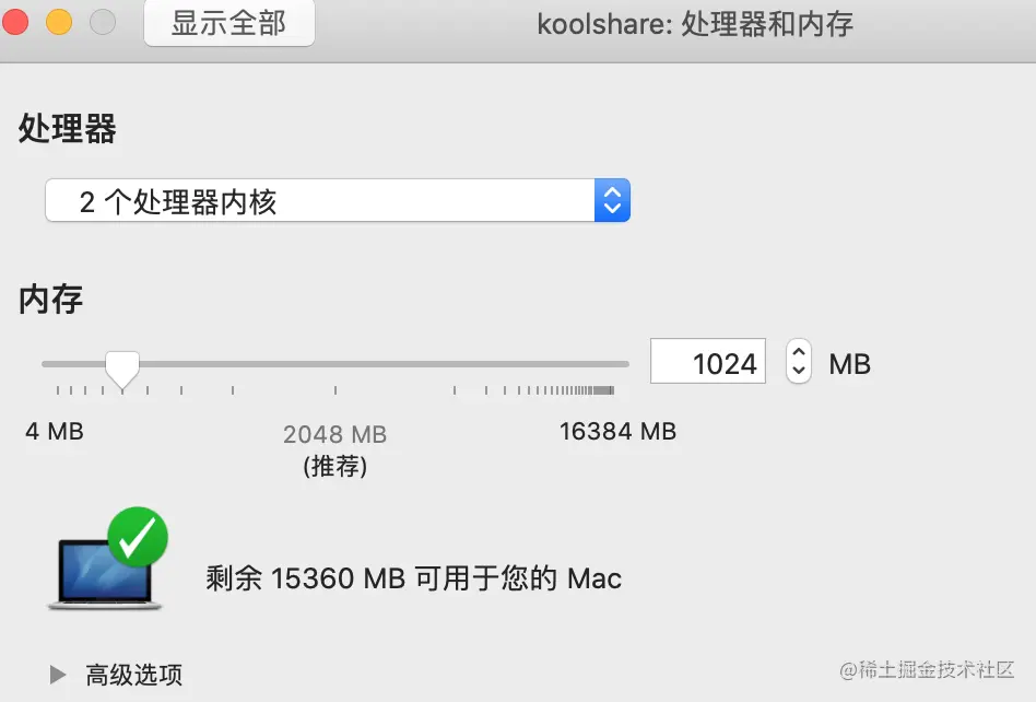 设置为1G内存, 1核cpu