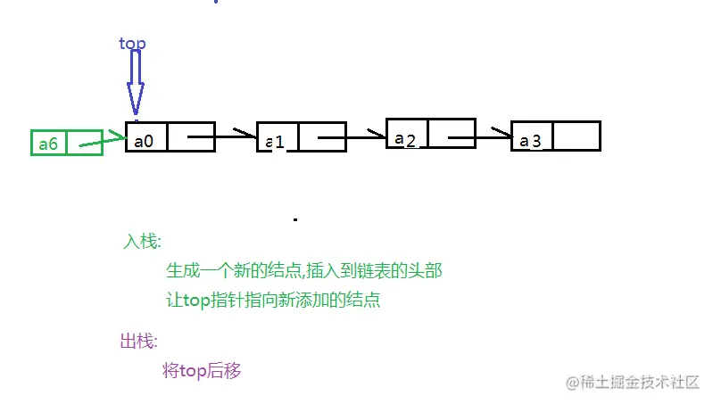 top = top.next; //栈顶指针后移