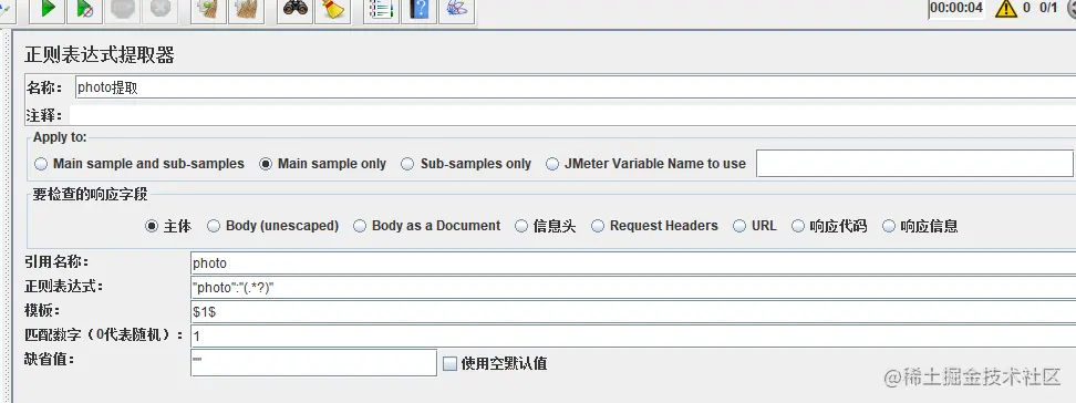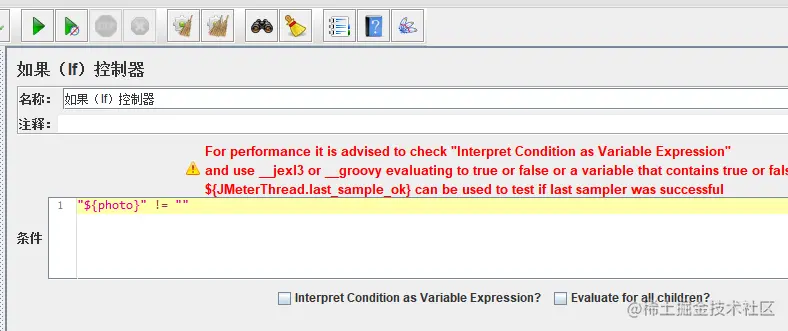 jmeter if控制器的使用 Cccm 2021-11-26 363 阅读1分钟 若提取的是字符串,正则提取的缺省值用null if控制器判断条件 使用${photo} != null 无效 需要改成 正则提取的缺省值用"" "${photo}" !="" 才生效