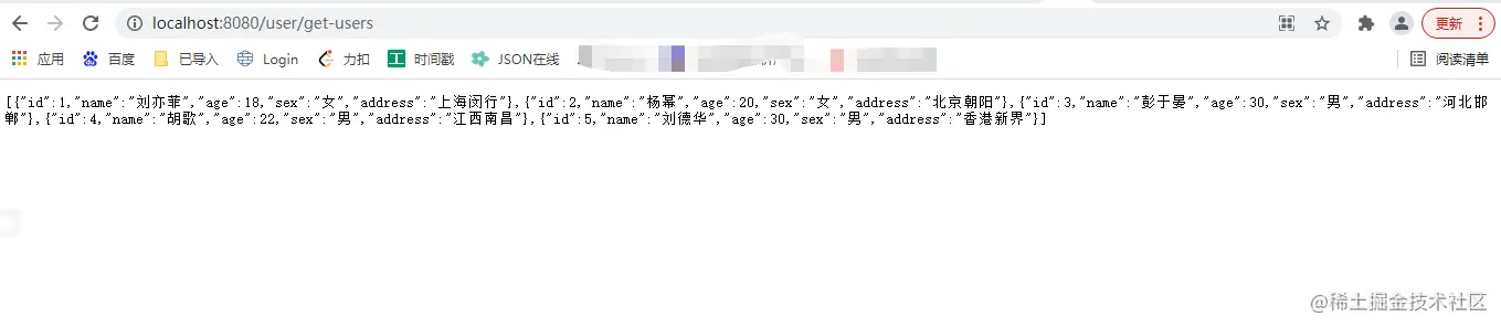 ok~咱们先来访问第一个接口;浏览器直接访问。