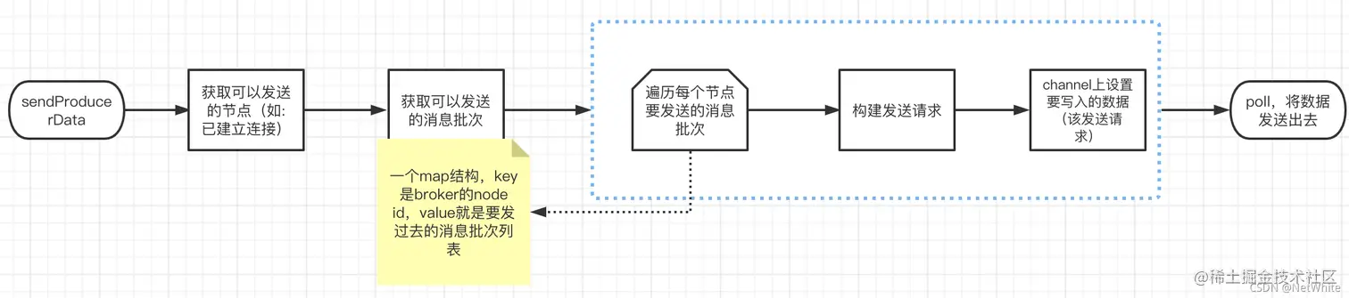 - 调用sendProducerData方法只是把要发送的请求准备好,还未进行实际的网络传输