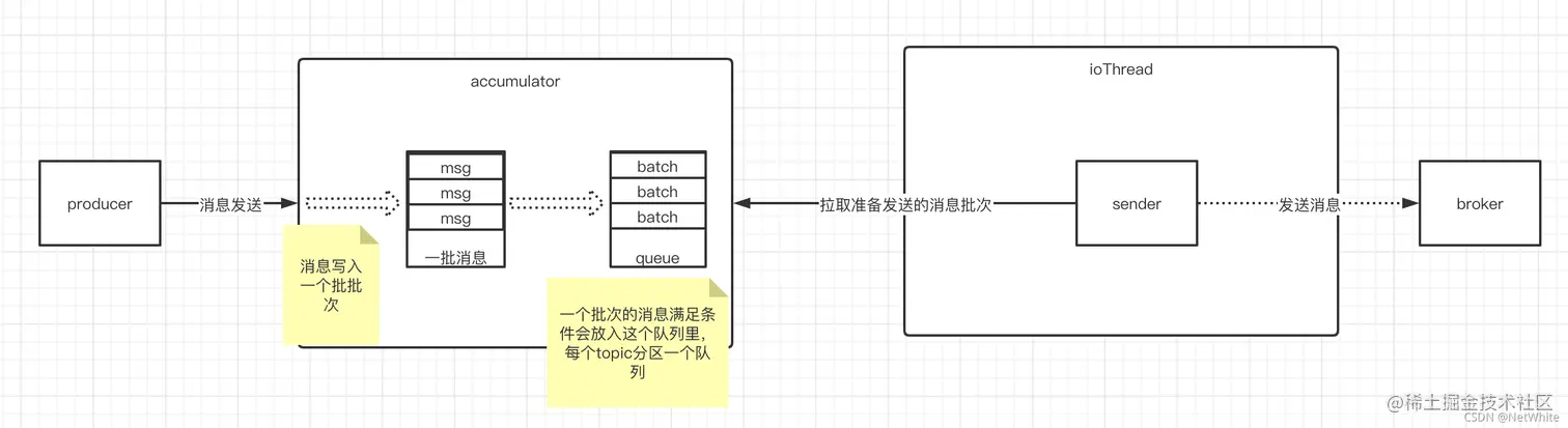 消息的发送过程基本就是这样,主要采用的就是生产者-消费者模式,异步批量发送的形式。