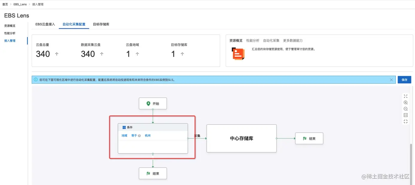 - 可以使用地域、实例ID、付费类型、磁盘类型、标签等属性设置采集条件。