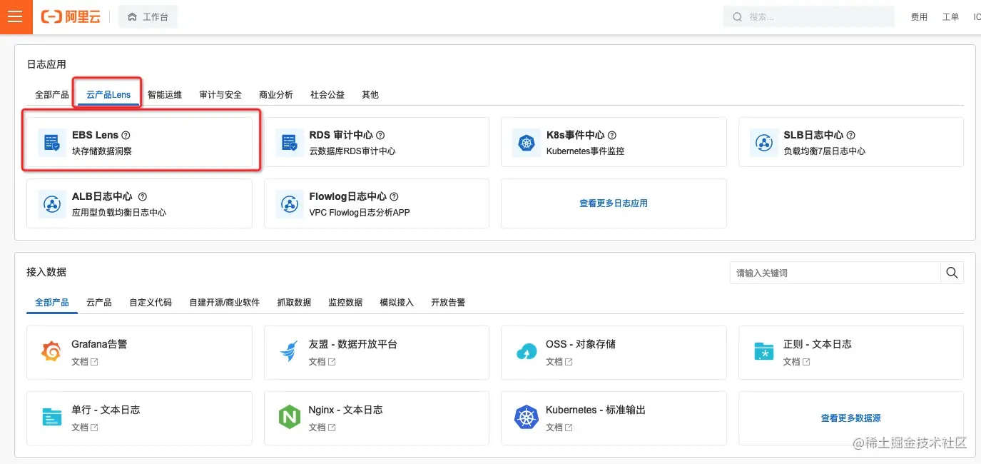- EBS Lens前端入口:sls.console.aliyun.com/lognext/pro…