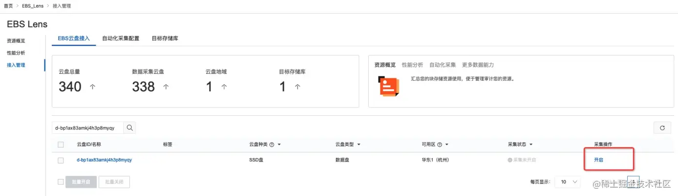 2.在EBS Lens的页面打开该云盘的监控数据采集