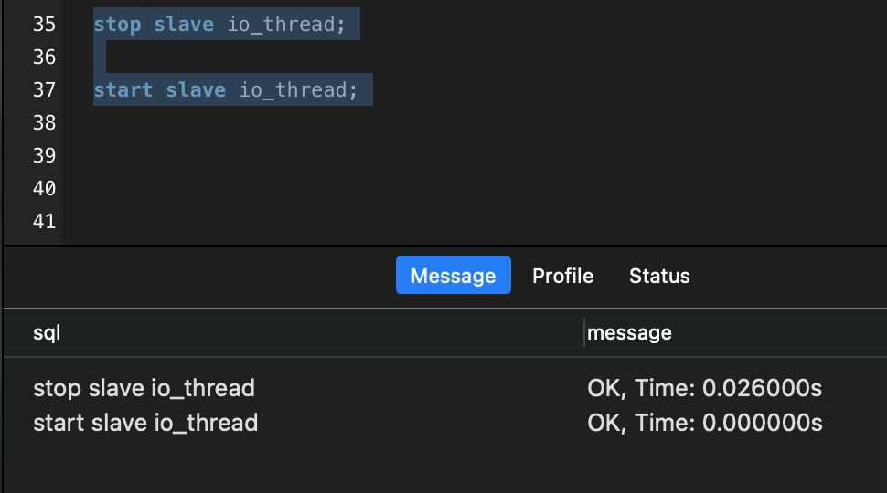 注意,由于之前配置的复制是异步复制,所以要重启一下从库上的I/O线程(如果是全新配置的半同步复制则不需要):