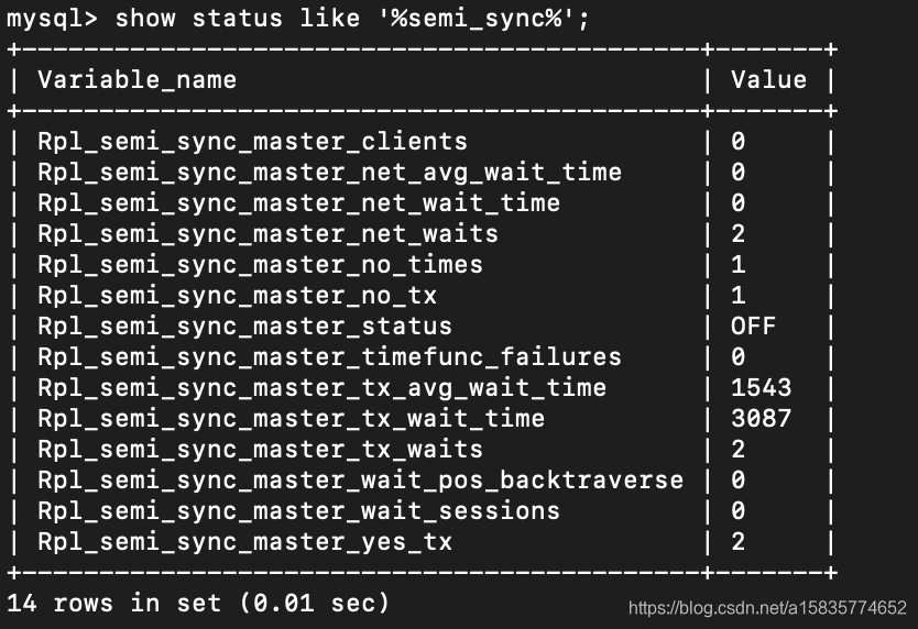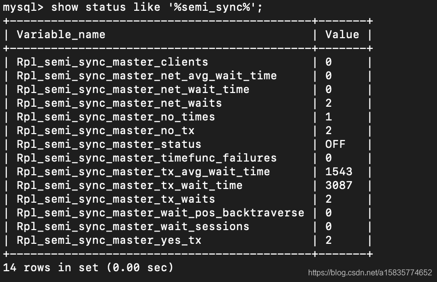 Rpl_semi_sync_master_status | OFF 半同步复制目前处于关闭状态。