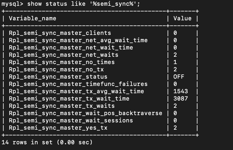 Rpl_semi_sync_master_no_tx | 2 当前有2个事务不是通过半同步模式下从库及时响应的
