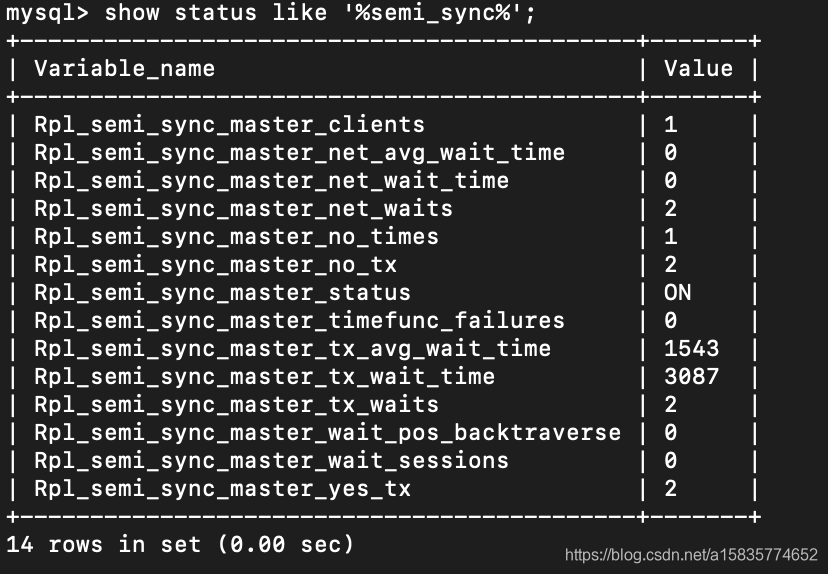 Rpl_semi_sync_master_no_tx | 1 当前有1个事务不是通过半同步模式下从库及时响应的