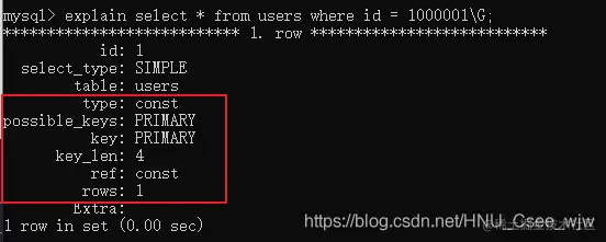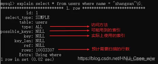 只用了0.02秒,explain一下的结果如下,也验证了该理论: