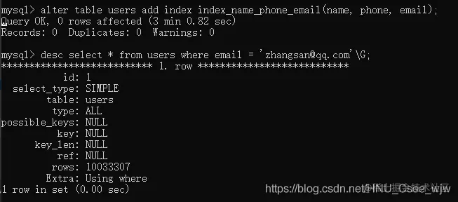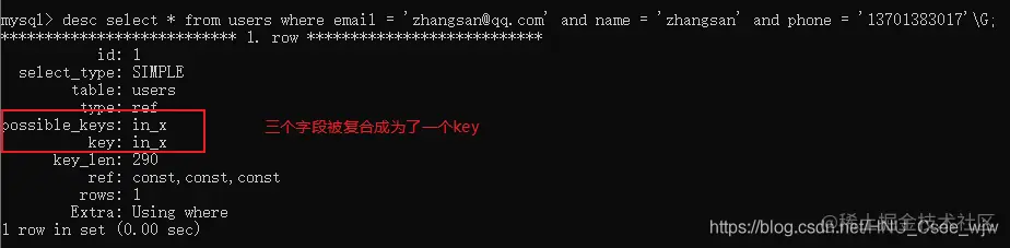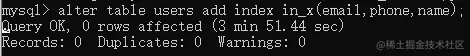 alter table users add index in_x(email,phone,name);