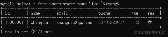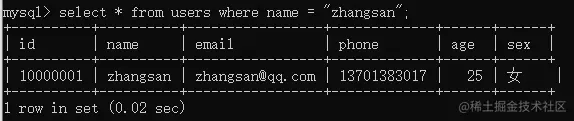select * from users where name = "zhangsan";