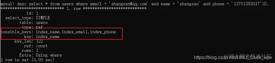 - possible_keys 可能用到的索引