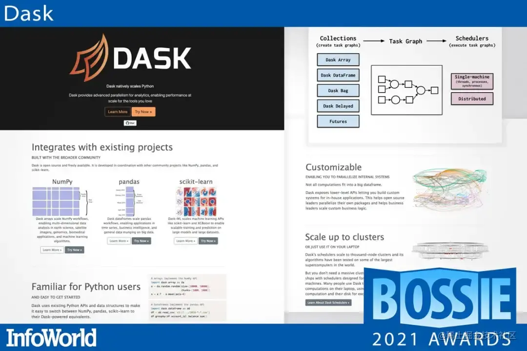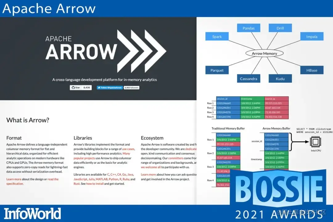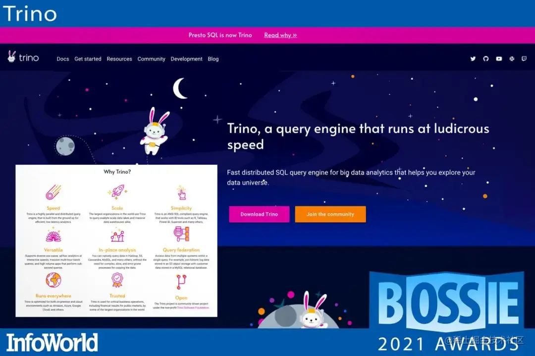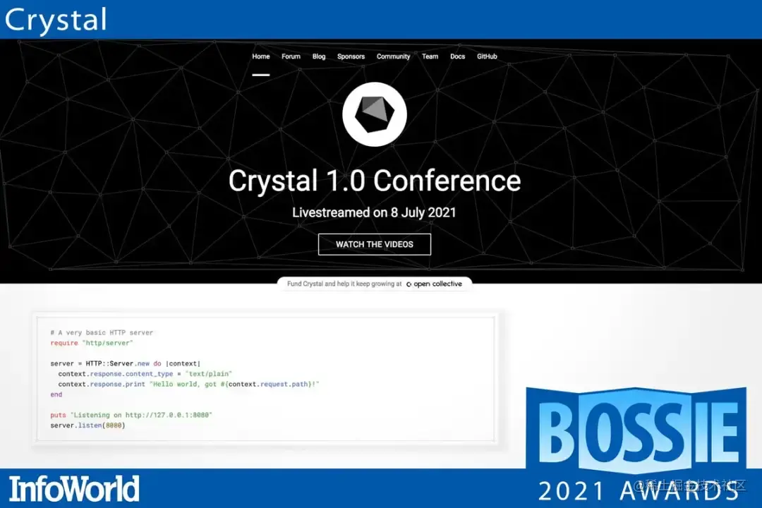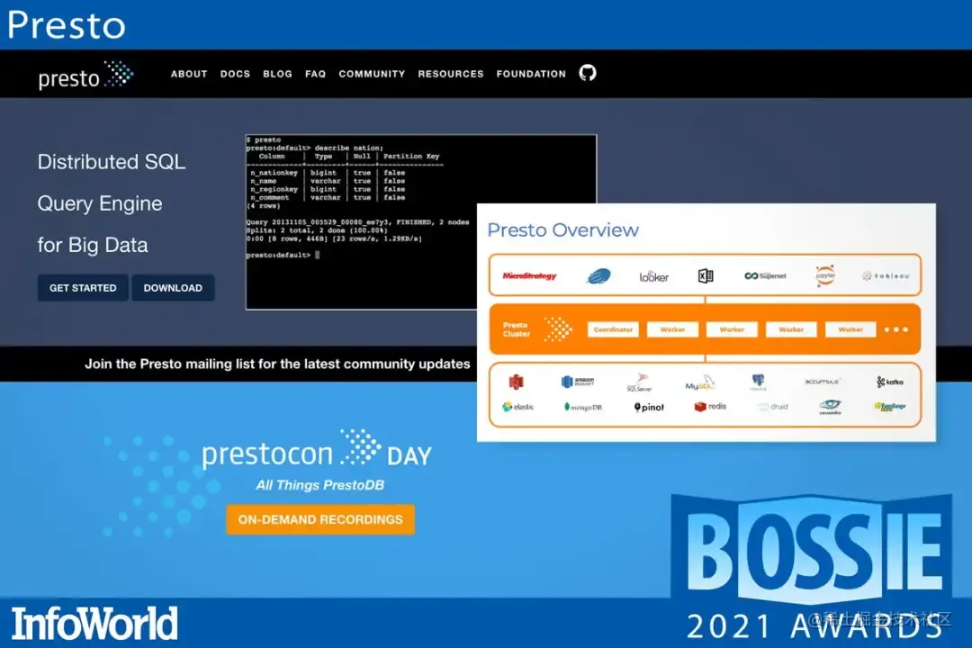 InfoWorld 是一家信息技术媒体公司,成立于 1978 年目前隶属于 IDG。每年 InfoWorld 都会根据软件对开源界的贡献,以及在业界的影响力评选出当年的“最佳开源软件” (BOSSIE),该奖项评选已经延续了十多年。