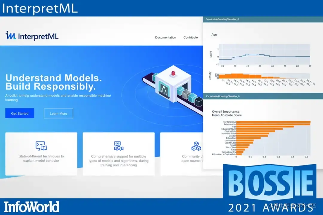 InterpretML 是一个开源的 Explainable AI(XAI)包,其中包含了几个最先进的机器学习可解释性技术。InterpretML 让你训练可解释的 glassbox 模型并解释黑盒系统。InterpretML 可帮助你了解模型的全局行为,或了解个别预测背后的原因。在它的许多功能中,InterpretML 有一个来自 Microsoft Research 的"glass box"模型,称为 Explainable Boosting Machine,它支持用黑盒模型的近似值进行 post-hoc 解释的 Lime。