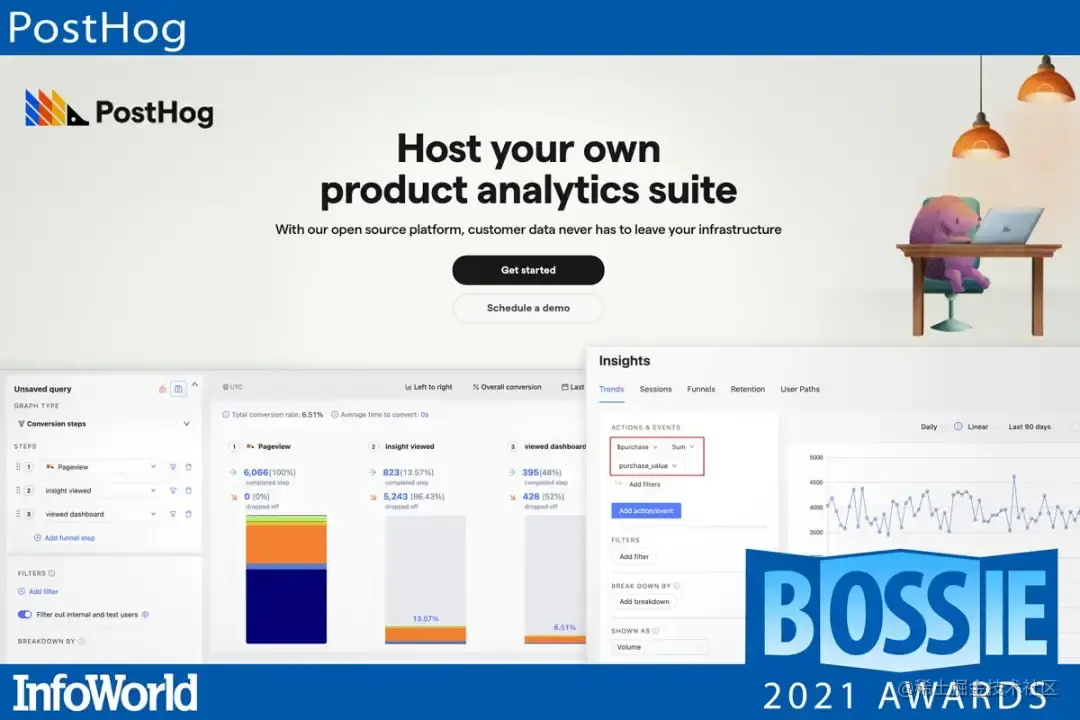 PostHog 是一个为开发人员构建的开源产品分析平台。自动收集你网站或应用程序上的每个事件,无需向第三方发送数据。它在用户级别提供基于事件的分析,捕获你产品的使用数据以查看哪些用户在你的应用程序中执行了哪些操作。它会自动捕获点击次数和综合浏览量,以分析你的用户在做什么,而无需手动推送事件。