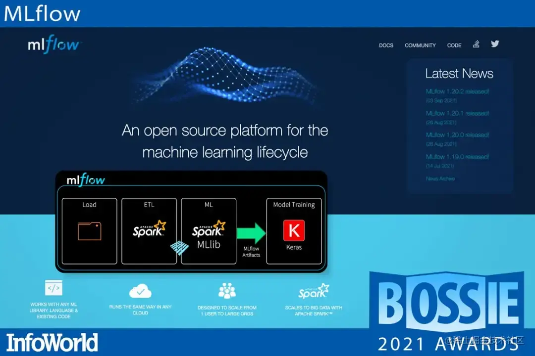 MLflow 由 Databricks 创建,并由 Linux 基金会托管,是一个 MLOps 平台,可以让人跟踪、管理和维护各种机器学习模型、实验及其部署。它为你提供了记录和查询实验(代码、数据、配置、结果)的工具,将数据科学代码打包成项目,并将这些项目链入工作流程。