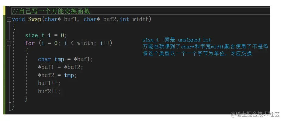 Swap((char*)base + j * width, (char*)base + (j + 1) * width,width);
