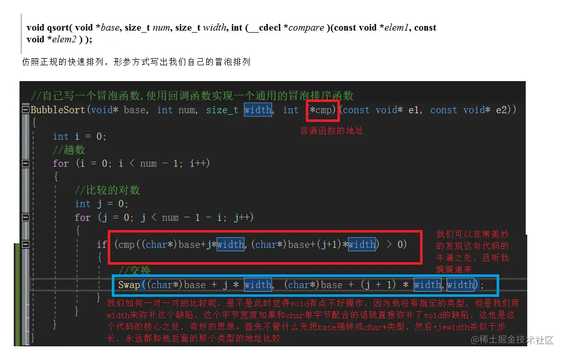 voidBubbleSort(void* base, int num, size_t width, int (*cmp)(const void* e1, const void* e2))