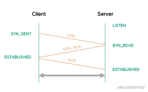 第一次握手:建立连接时,Client 端发送 SYN 包到 Server 端,并进入SYN_SEND状态,等待服务器确认;