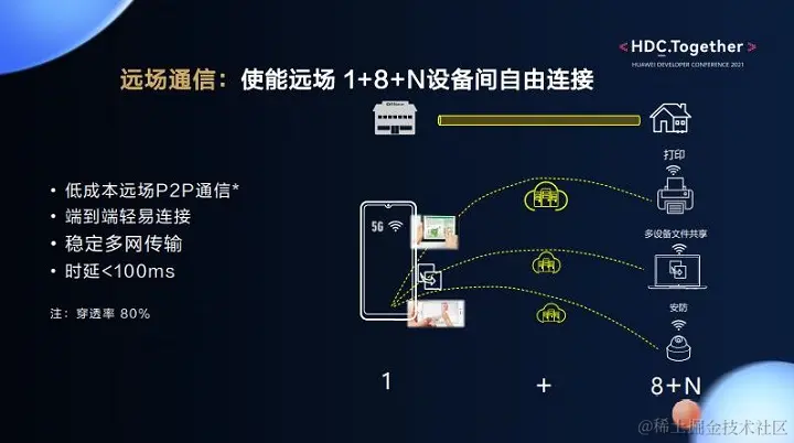 一台手机连接多设备,可应用于远场打印、文件共享、家中安防等场景。低成本远场P2P能力保证用户端到端的轻易连接,提供稳定的多网传输,时延小于100毫秒,穿透率达到80%。