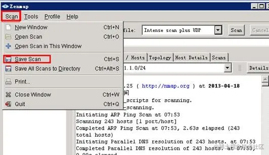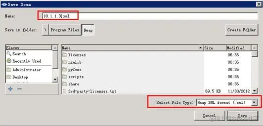 选择“scan”菜单中“Save Scan”选项保存扫描结果,保存类型选用默认的XML格式。