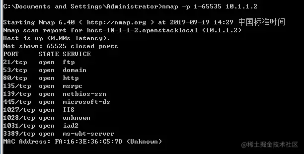 3.扫描目标主机10.1.1.2所有端口(1-65535)