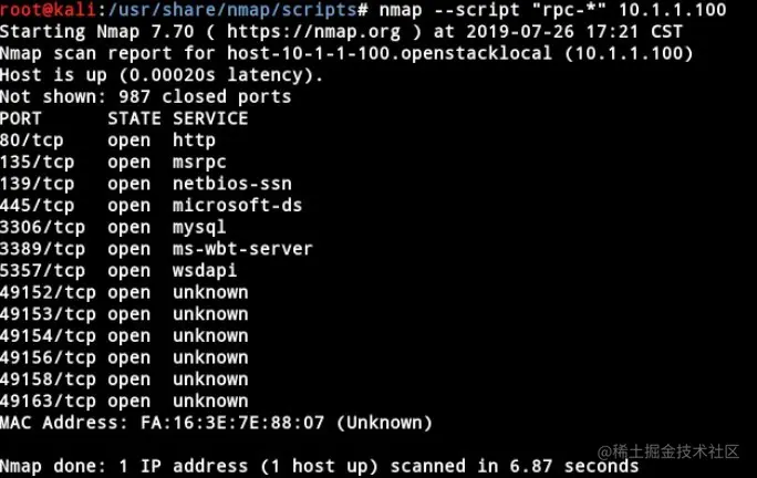 那么我们就可以使用通配符*来对目标机器检测时使用所有的与某种相关的脚本,比如使用所有与rpc相关的脚本。