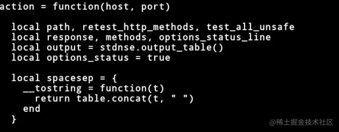 在自己写之前,我们先以http-method这个脚本为例看看主体结构是什么样的。Windows下用nodepad plus打开D:\Program Files (x86)\Nmap\scripts\http-methods.nse。