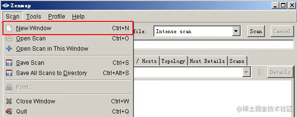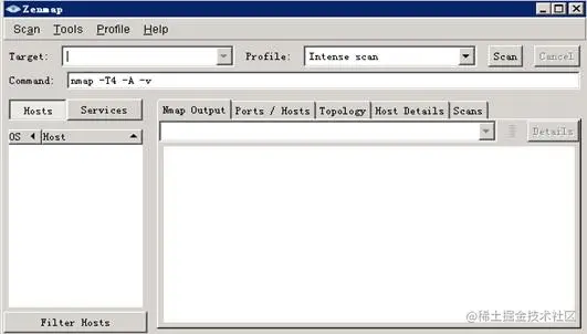 安装完成后桌面会自动添加一个nmap的快捷方式,双击该图标会出现nmap的主界面: