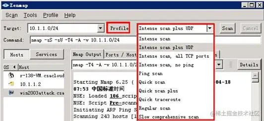 4.选择不同的profile重新对目标10.1.1.1进行扫描