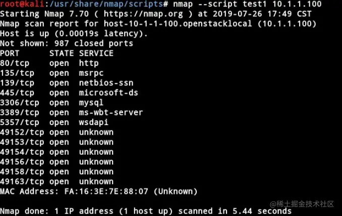 可以使用种类的名字调用该分类下的全部脚本,比如--scritp vuln,不过这比较费时间,在此就不演示了。