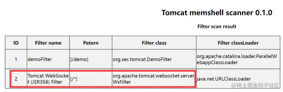 如下图,防守方在审计时,看到FilterName和FilterClass都是Tomcat自带的,FilterClassFile位于Tomcat/lib下的,是没有什么问题的