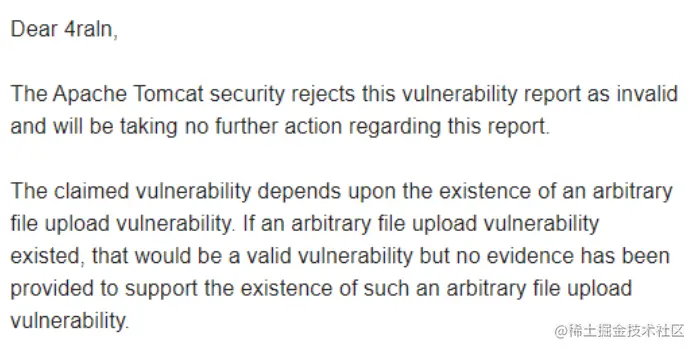 Tomcat果然拒绝了,原因是需要在其他漏洞的基础上触发