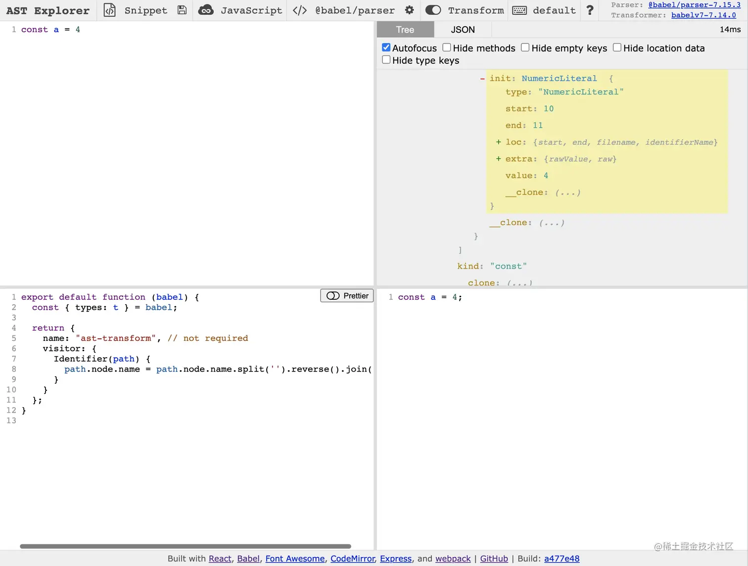 对相同的语言,也存在诸多的解析器,也就会生成多种 AST,如 babel 与 espree。