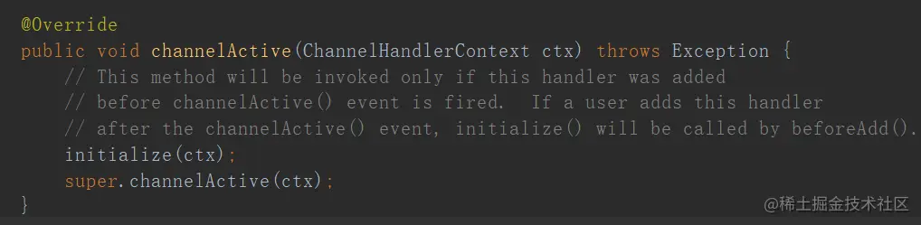 public void channelActive(ChannelHandlerContext ctx) throws Exception {