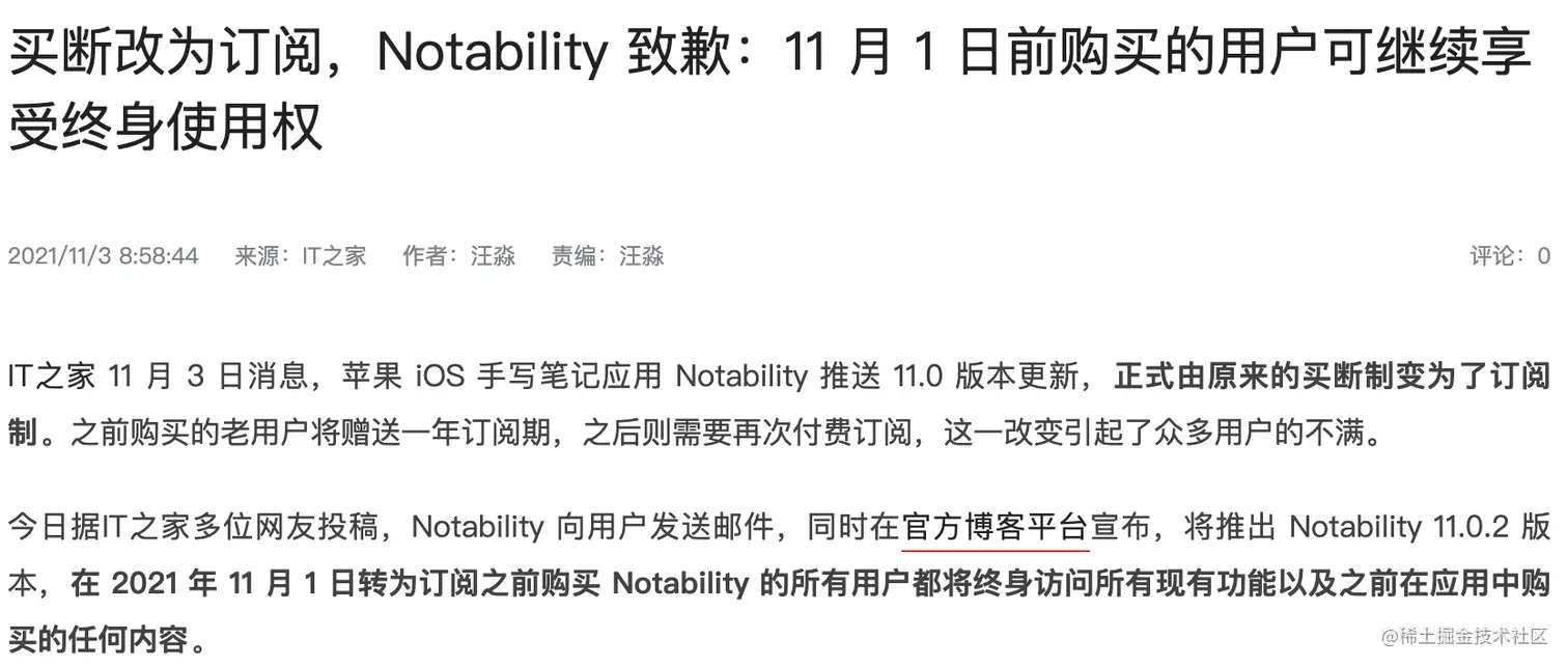 希望Typora能够越来越好,不过也别搞出前段时间Notability买断改订阅制那种事件……说实话,Notability要不是用户一片骂声道歉改掉了方案,估计会对付费生态有很大影响……