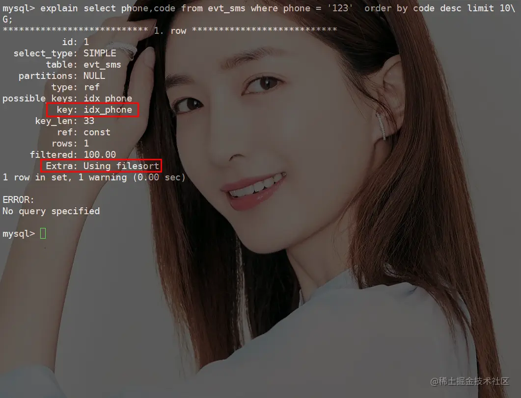 在上文你有没有发现一个细节,SQL中只需要排序code字段,但把phone字段也加到了sort_buufer中了。