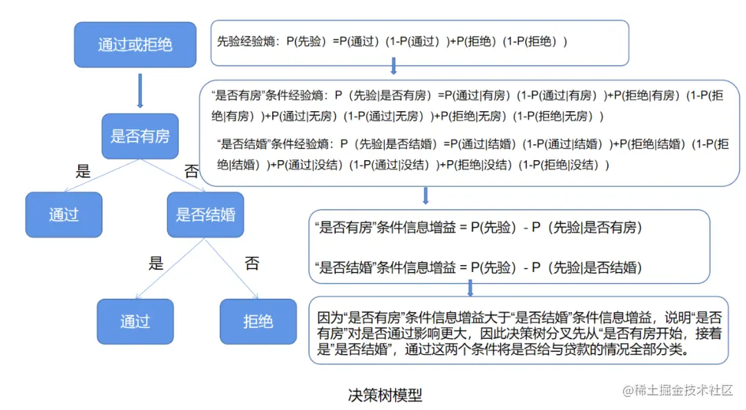 可以看到决策树模型和之前的决策树七步法思考方式有相似性,都是一步一步判断得到最终结论,但是前者是感性判断,这里是通过数值计算。