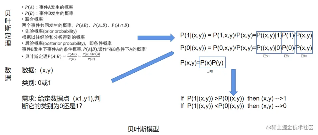这是来自统计学的数据分析模型,基于著名的贝叶斯定理。在我们日常做决策的时候,往往都会有这样一种感觉,当我对问题一无所知的时候,对做决策毫无把握,全靠猜,但是给了你一些信息之后,你对某个答案的把握就大一些。但是怎么衡量你的把握大小呢?贝叶斯定理说的就是你这个做决策过程的量化。