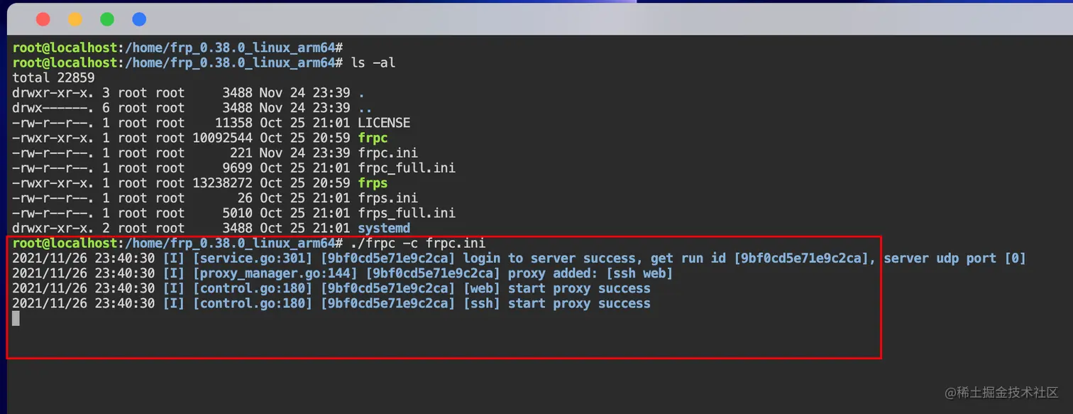 ./frpc -c frpc.ini