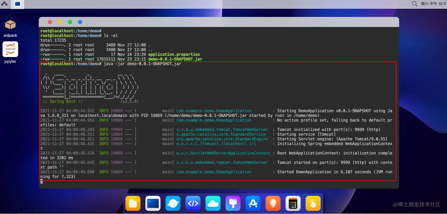 5.将生成在target目录下的demo-0.0.1-SNAPSHOT.jar文件部署在AidLux平台中,并运行。
