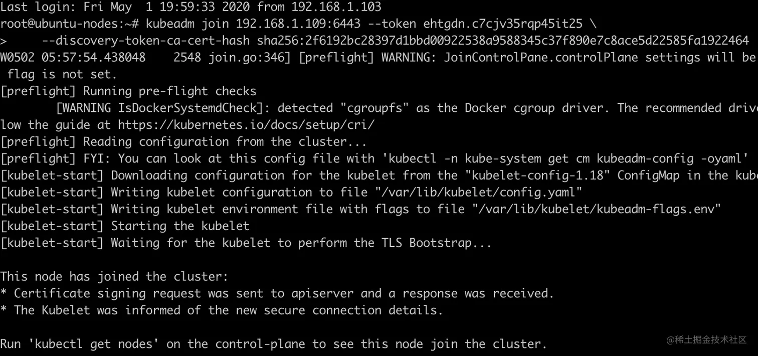 1. 将之前记录下来的kubeadm join 命令执行