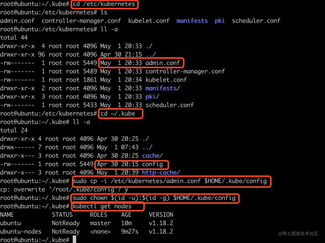 于是, 执行了sudo cp -i /etc/kubernetes/admin.conf (id -u):HOME/.kube/config