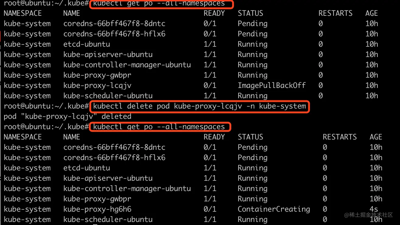 kubectl delete pod kube-proxy-lcqjv -n kube-system