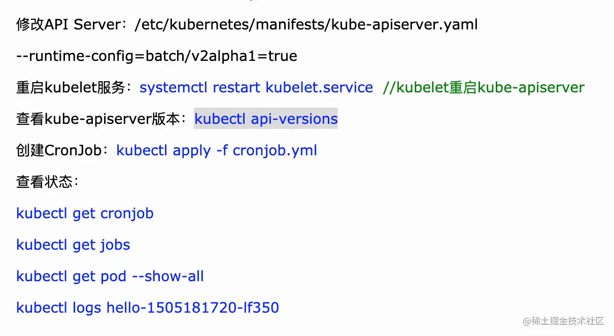 去kube-apiserver.yaml文件中添加: - --runtime-config=batch/v2alpha1=true,然后重启kubelet服务,就可以了