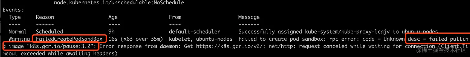 从错误原因可以看出, 需要pause:3.2镜像, 但是没有.