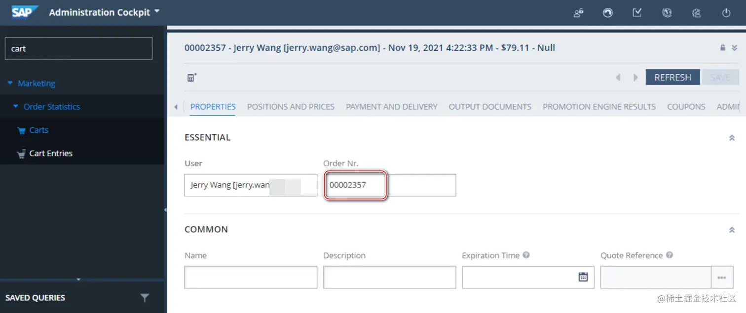 店铺管理员可以登录电商后台管理页面,根据购物车编号 2357 查到我刚刚添加了商品的购物车: