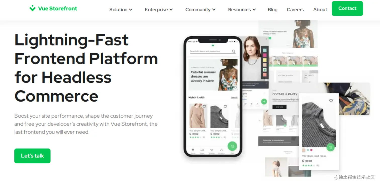 目前电商领域有两款比较出名的开源电商网站解决方案,分别是基于 Angular 开发框架,代号为 Spartacus 的开源项目,以及基于 Vue 的 Vue Storefront.