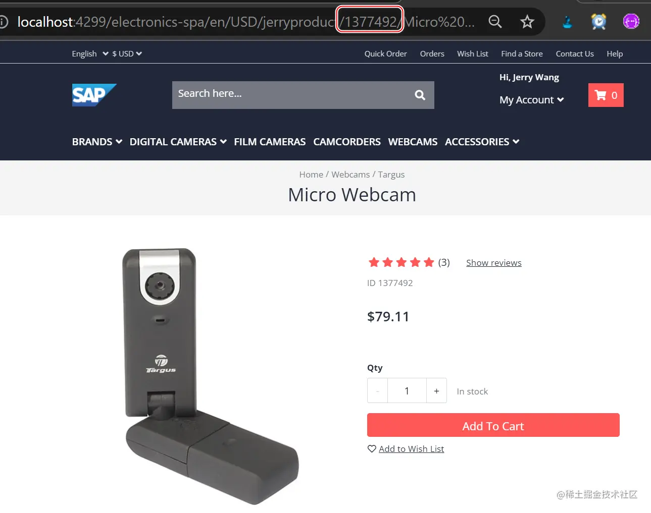 我们随便在店铺上选择一台电子设备,进入商品明细页面,点击 Add To Cart,将其添加到购物车: